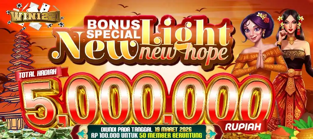 WIN1221 ingin membagikan BONUS SPECIAL NEW LIGHT, NEW HOPE kepada 50 Member kami yang beruntung,dengan total hadiah mencapai Rp 5.000.000,- .